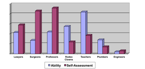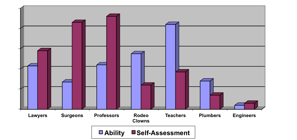 From our files of extrapolated data (meaning we didn’t actually measure anything, but it is likely good data from our perception), we see a bar chart with various professions and their level of ability in public speaking vs. how they perceive themselves. Here is the chart: