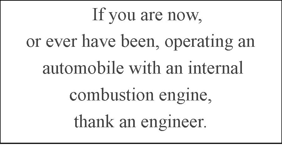 Think of all the aspects of our lives that engineers are responsible for – yet engineers are completely taken for granted. So, I propose that the following bumper stickers (with no cutesy graphics or fru-fru font) be placed on cars, quite the appropriate place for them: