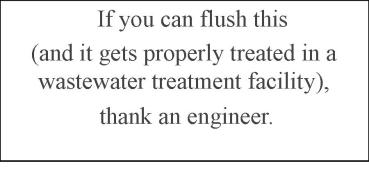 OK, a little wordy (looks like an engineer wrote it), but very true. Actually, there are many places where we can place stickers to remind ourselves of the reach of engineers in our society. For example, on our toilets we should place the following:
